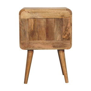 Crafted with 100% solid mango wood and a natural oak finish, this T-bar Ridged Bedside Table exudes elegance and durability. The T-bar handles provide effortless access to the drawers, while the 4 Nordic-style legs offer stability and a modern touch. Elevate your bedroom with this versatile piece.