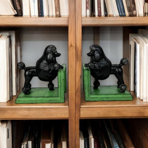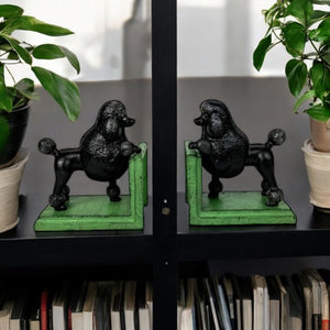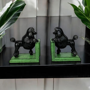 Introduce fun and functionality to your bookshelf with this pair of playful poodle bookends. The black poodle and green base add a touch of whimsy to any space while keeping your books organized. Perfect for dog lovers and bookworms alike. Measurements: 14.5cm height, 12.5cm wide.