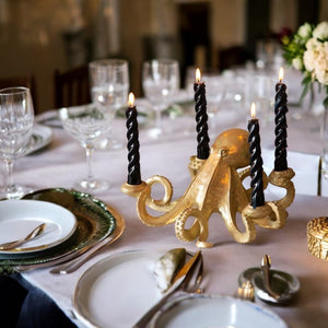 Bring a touch of whimsy and elegance to your home with our Gold Octopus Candle Holders. This holder will add a fun and unique touch to any dinner party or cozy night in.
