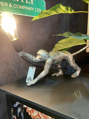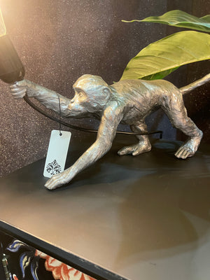 Experience the natural beauty of the wild with our Silver Antique finish cheeky monkey lampshade. This resin lamp features exquisite sculpted detailing that truly comes to life when lit, making it a must-have for any nature-inspired home. Please note that slight variations in color may occur. This lamp requires only one E27 large Edison screw bulb, with a maximum wattage of 40w.