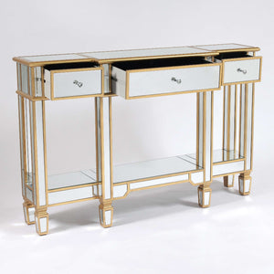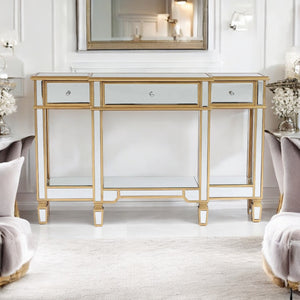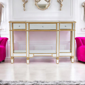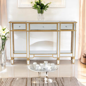 This Gold Mirrored 3 Drawer Console Table Hallway Table makes an unforgettable entrance with its charming appearance.