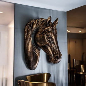 Introducing our antique bronze horse head sculpture, a majestic addition to your wall décor. Standing at 50cm tall and measuring 18cm in width and 34cm in depth, this unique piece will add a touch of classical charm to any room. Perfect for the horse lover in your life!