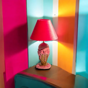 Light up your space with this quirky ice cream Table Lamp. Featuring a playful design and a fun shade, this lamp is perfect for all ages and adds a fun touch to any room. Perfect for home and room styling, this lamp is sure to be a sweet addition to your décor!