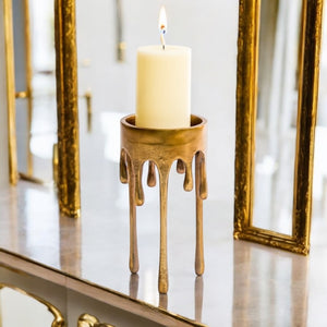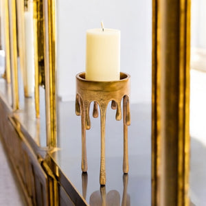 Transform your home with our stunning Drip Candle in Gold. Made with durable aluminium, this unique centrepiece will elevate any room. Perfect for gifting or entertaining, this large 30cm holder adds style and ambiance to any occasion. Create a warm and inviting atmosphere with this timeless piece!