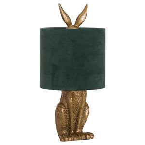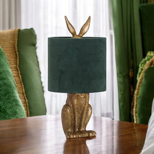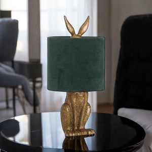 Golden hare table lamp - Green shade.