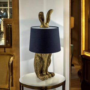 This Resin Rabbit Ears Lamp with a classic Golden Antique finish is sure to add a touch of nature-inspired elegance to any home. Its intricate sculpted details really come to life when illuminated, making it a beautiful and distinctive addition to a modern interior. This lamp requires a 1-E27 Large Edison screw bulb.