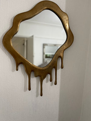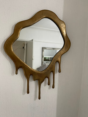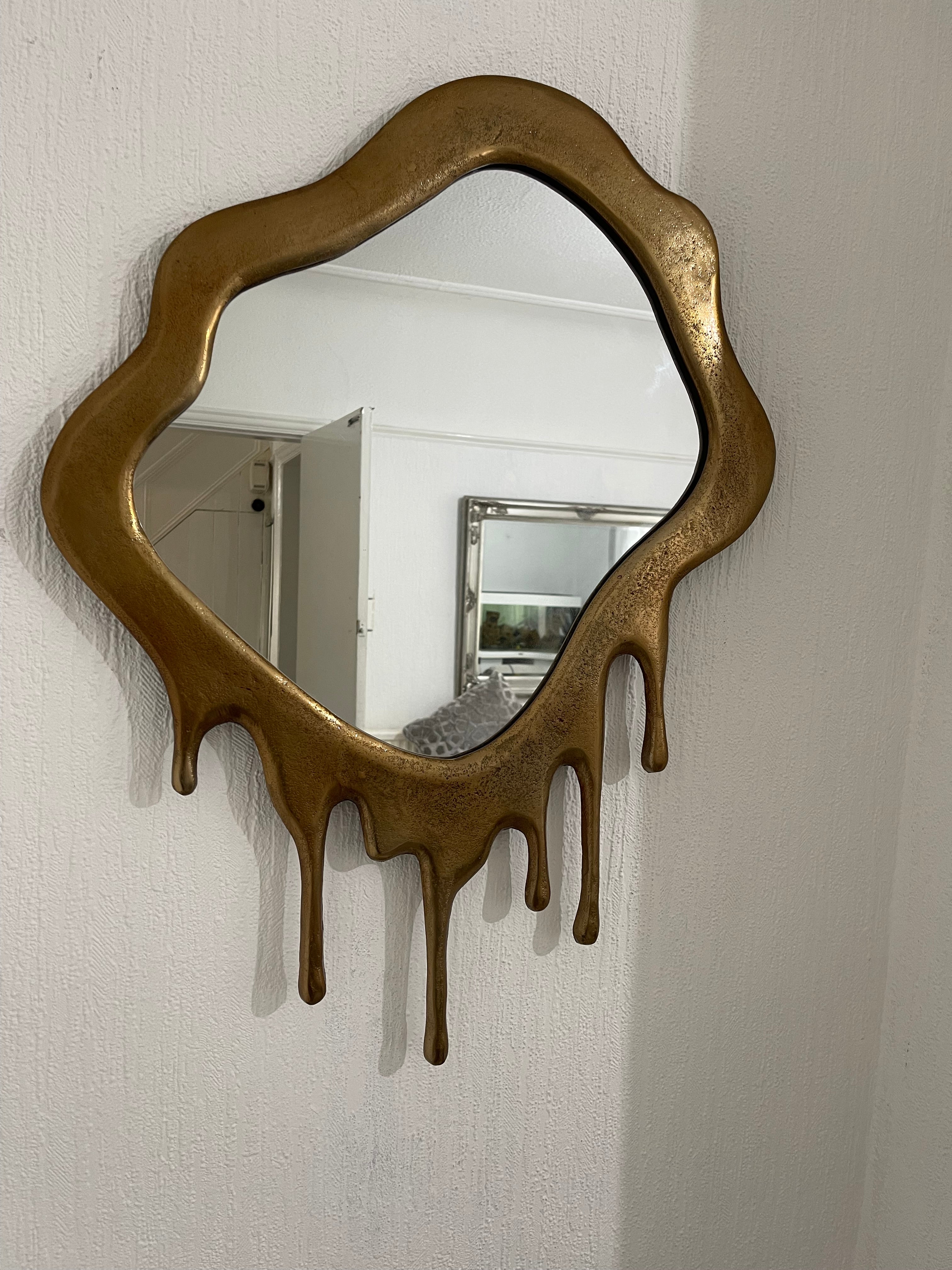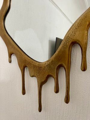 Enhance your home with the Golden Drip Mirror - Medium. Featuring a unique golden drip style, this mirror is made of high-quality aluminium for durability and a sleek aesthetic. Elevate your decor with this stylish and modern mirror, perfect for any room in your home.