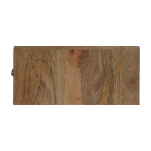 This minimalistic wall-mounted bedside unit has been constructed from 100% solid mango wood in an oak-ish finish and features 1 line carved design drawer with a shiny knob.