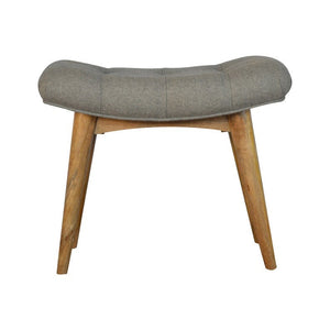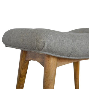 Luxe Grey Tweed bench seat. This single seater bench/footstool is constructed from 100% solid mango wood, and the seat is upholstered in grey tweed.