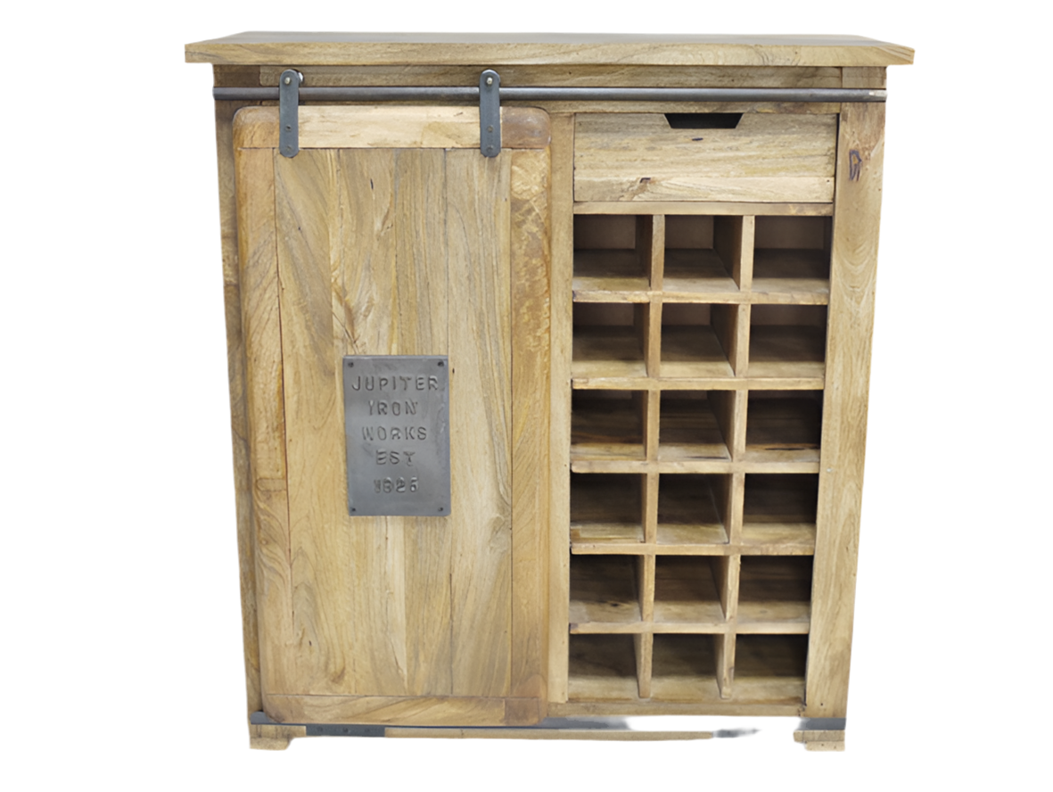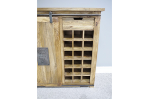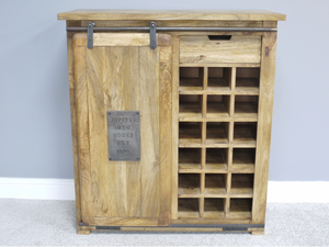 Made from sturdy, high-quality Fir Wood and Iron, this cabinet is built to last for many years of entertaining and memories with loved ones. With its impressive dimensions of H: 100cm W: 90cm D: 40cm and a weight of 48kgs, you can rest assured that your prized wine collection will be stored safely and securely while also adding a touch of unique charm to your home decor. Elevate your hosting game and impress your guests with this one-of-a-kind piece.