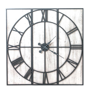 Experience the stunning design of our Large Panelled Wall Clock, featuring a beautiful wooden base with a contrasting grey metal roman numeral clock face. Measuring 5L x 112W x 112H and powered by 1 AA battery, this clock is sure to make a statement in any room.