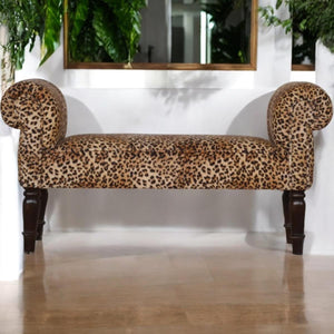 Leopard velvet bench