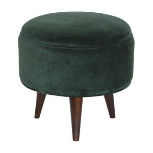 Green Luxurious velvet footstool Combining the best of simplicity with the timeless look of luxury, this stylish footstool is emerald green.