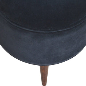 This beautiful piece provides perfect contrast between the beautiful upholstered Black cotton velvet and wooden legs constructed from 100% solid mango wood, made to compliment the classic Scandinavian style.