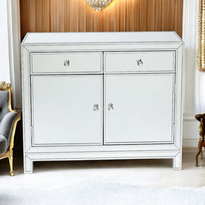 This silver finish mirror sideboard cabinet offers both style and functionality. With multiple storage options, it provides a versatile solution for organizing your items. The mirrored surface adds a touch of elegance, making it a perfect addition to any room.