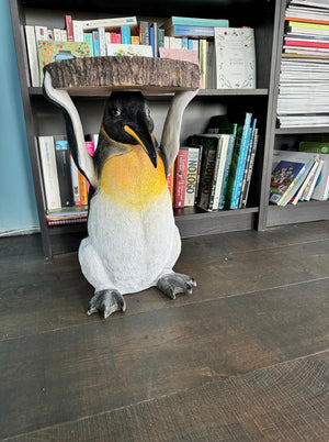 This stunning side table features an eye-catching penguin design and is crafted holding a trunk slice for its table top. With its beautiful design and sturdy construction, it makes for a stylish and functional addition to any living space. Bring a touch of nature and elegance into your home with this one-of-a-kind piece.