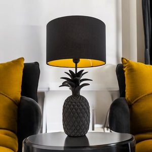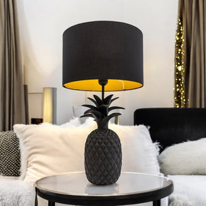 Black pineapple Matt table lamp Expertly crafted with a sleek black finish, the Black Matt pineapple table lamp adds a touch of sophistication to any room. With its unique pineapple design, this lamp is both stylish and functional, providing a warm and inviting ambiance to your space. Elevate your decor with this statement piece.