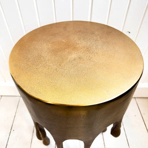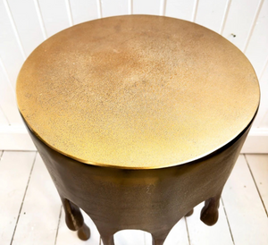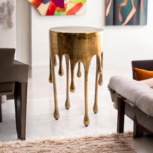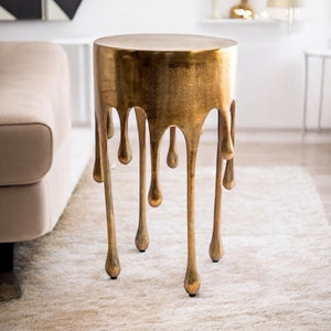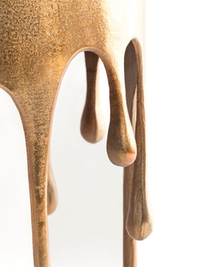Expertly crafted, the Golden drip Side Table features a stunning golden drip design. Its unique appearance makes it an ideal centrepiece for any room, adding both elegance and functionality. Expertly crafted with precision, it is sure to make a statement in any space. It's crafted to impress. The attention-grabbing drip design is one-of-a-kind, making this side table a must-have for any modern living space.