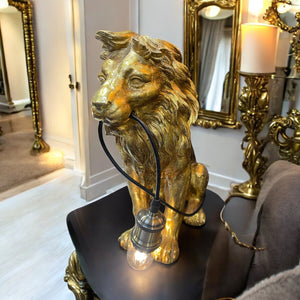 Elevate your home décor with our exquisite Sitting Lion Table lampshade. Featuring a stunning gold antique finish and intricate resin craftsmanship, this lamp is the perfect addition for those seeking to add a touch of nature to their space. The intricate sculpting truly comes to life when lit, making it a truly unique and eye-catching piece for any modern home. Please note that the colour may vary slightly.
