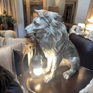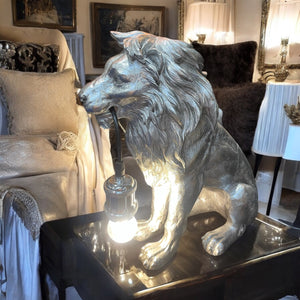 This silver antique finish sitting lion table lampshade is both beautiful and unique, making it a highly coveted addition for customers seeking to incorporate natural influences into their home décor. The resin material and intricate sculpted design truly come to life when illuminated, making it an eye-catching piece for any modern household. Please note that the colour may vary slightly.