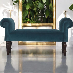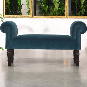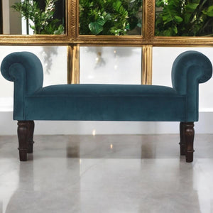 This lovely piece of furniture is ideal for a hallway, end of the bed or simply any living area in your home which is also ideal for extra seating. In a amazing Teal cotton velvet featuring turned legs constructed from 100% solid mango wood.